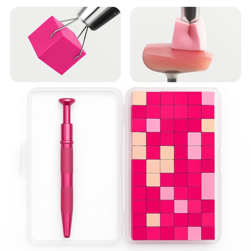 Este set profesional de esponjas para difuminado de uñas es la herramienta ideal para manicuristas que buscan acabados impecables y degradados suaves. Incluye una pinza metálica ergonómica y una caja con múltiples cubos de esponja en tonos variados, perfectos para realizar efectos como baby boomer, ombré, degradado francés o nail art con transiciones de color.