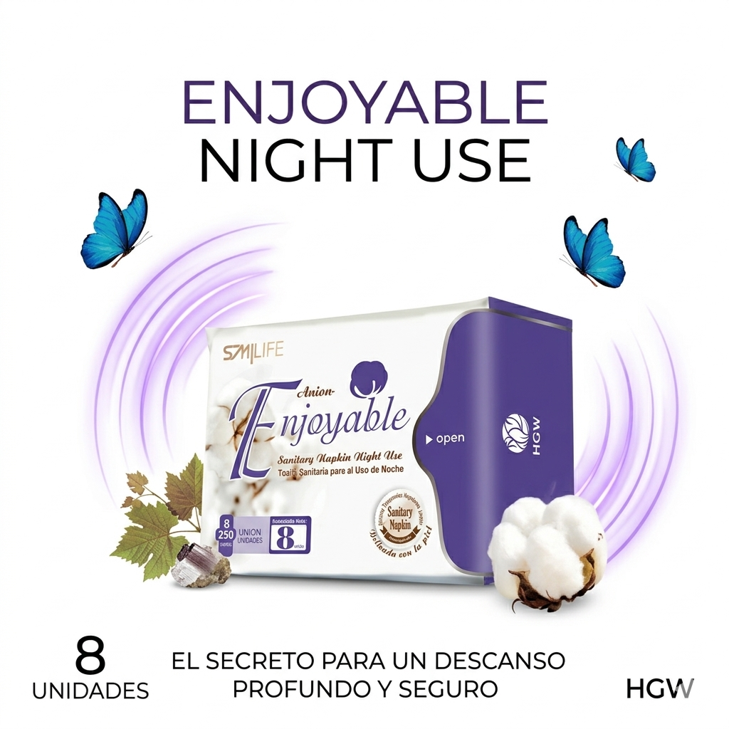 La Toalla Íntima Enjoyable Night Use HGW ha sido diseñada específicamente para ofrecer una seguridad inigualable mientras duermes. Debido a su capacidad de absorción superior, este producto es el aliado perfecto para las mujeres en América Latina (Costa Rica, México, Perú), Europa (España, Italia) y otras regiones globales de HGW. Por lo tanto, al elegir esta toalla sanitaria nocturna, usted garantiza un descanso reparador sin preocuparse por filtraciones o incomodidades, manteniendo siempre el estándar de calidad HGW.