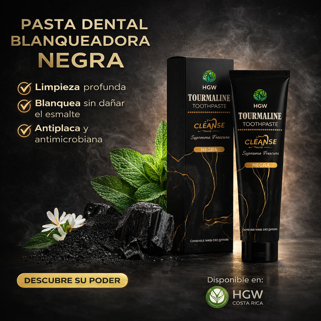 La Pasta Dental de Turmalina HGW Negra es una alternativa avanzada dentro del cuidado bucal, formulada con ingredientes naturales que ayudan a mantener una higiene oral completa. Su combinación de turmalina, xilitol y extractos herbales permite lograr una limpieza profunda sin dañar el esmalte, aportando una sensación de frescura duradera.